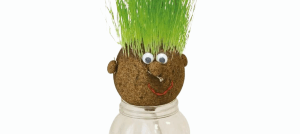 On fabrique ensemble une « tête de gazon » avec des matériaux simples : support, terre, graines… Puis on sème, on arrose et on prépare le terrain pour que ça pousse.